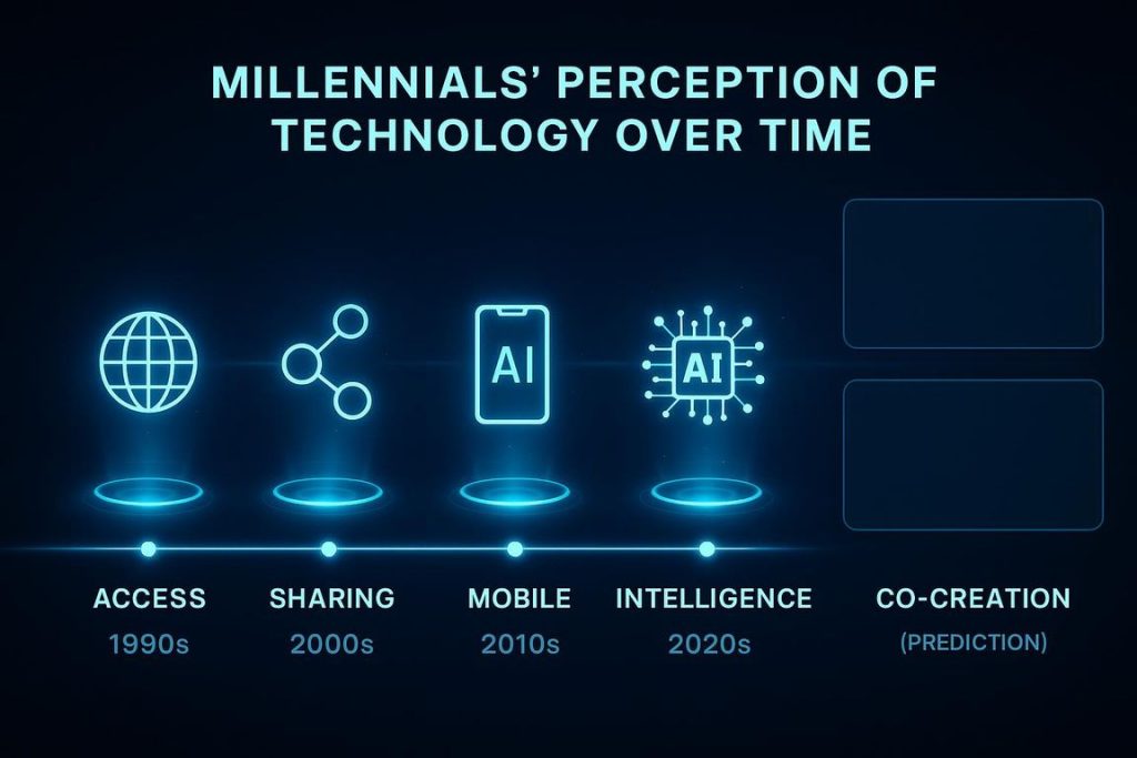 ミレニアム世代は、Windows 95の登場(1995年)や初期のウェブブラウザーの普及を直接体験した世代だ。彼らはテクノロジーが「一部の専門家のもの」から「誰もが使えるツール」へと民主化される過程を目撃してきた。